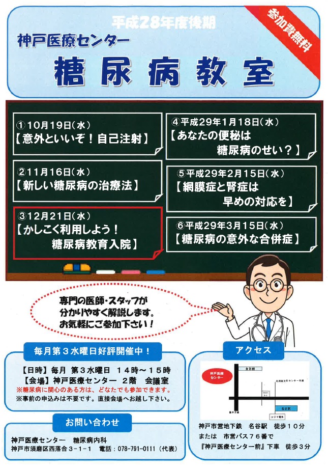 下記の通り「糖尿病教室」を開催いたします(平成28年度12月開催分)。
