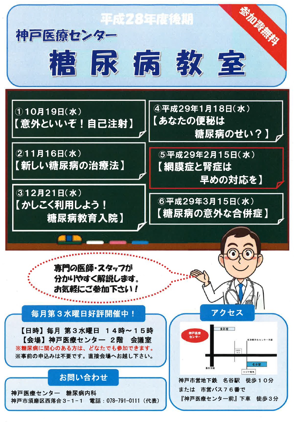 下記の通り「糖尿病教室」を開催いたします(平成29年度2月開催分)。