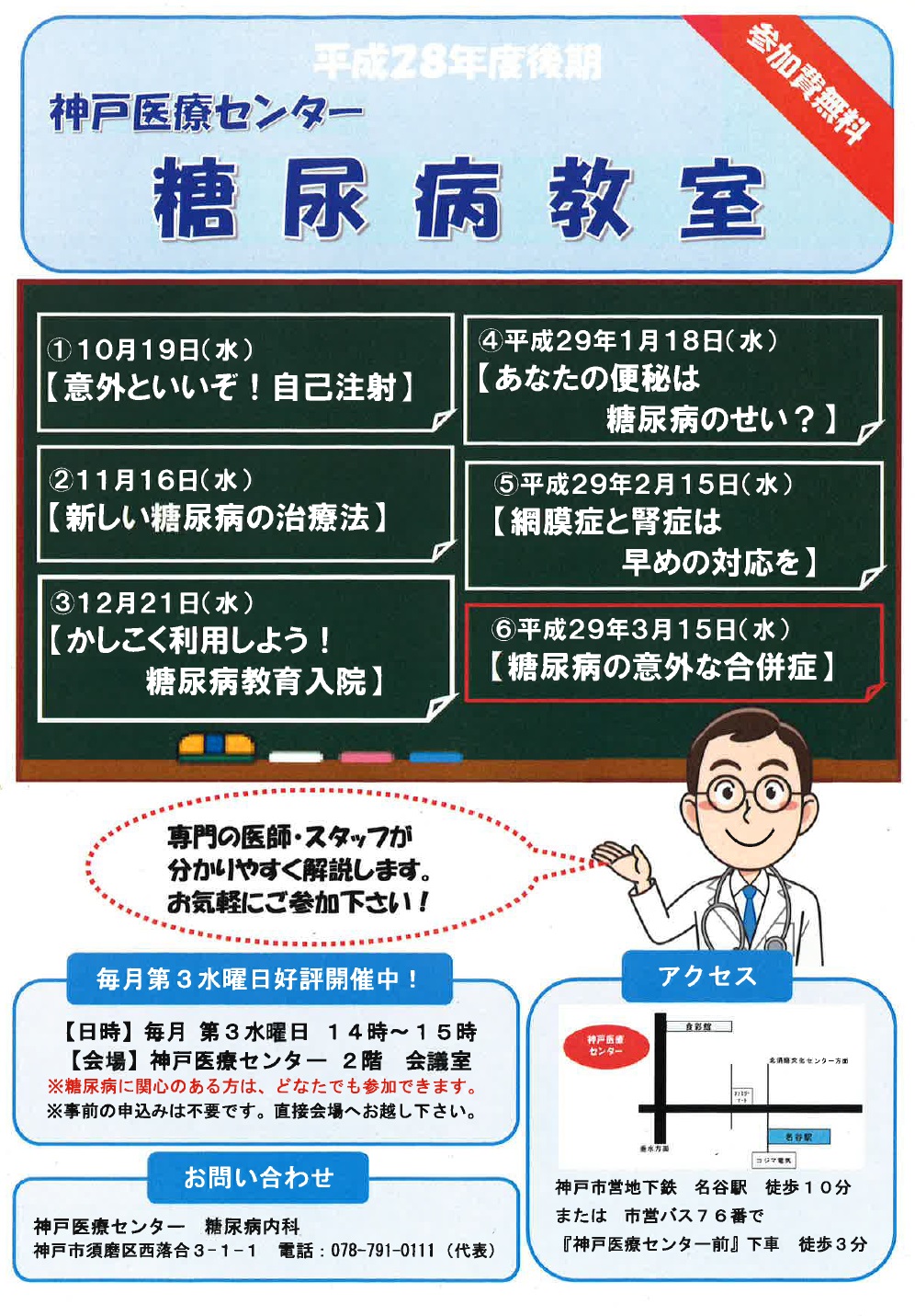 ※参加費は無料です。糖尿病に関心のある方はどなたでも参加できます。