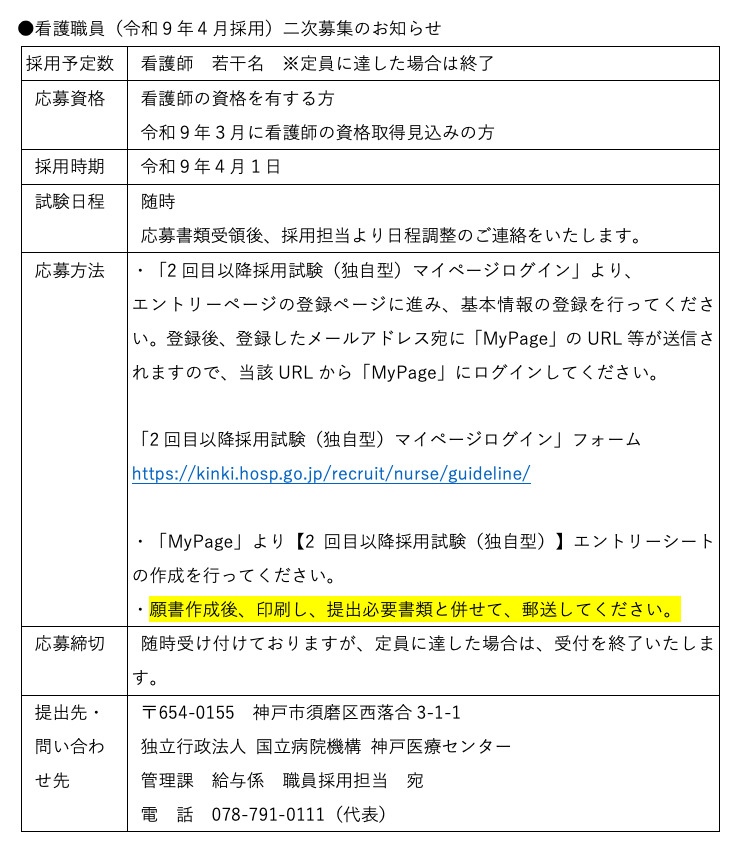 看護職員(令和9年4月採用)二次募集のお知らせ